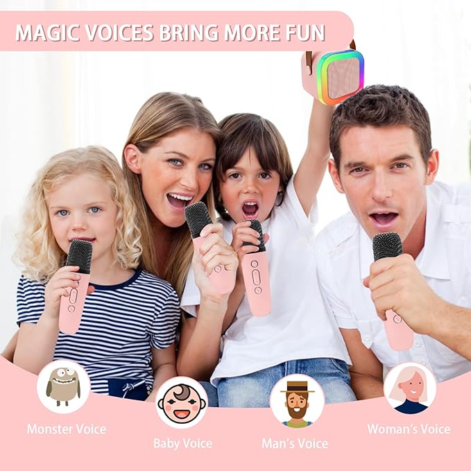 🎤【آلة كاريوكي بلوتوث متعددة الوظائف مع ميكروفون】آلات كاريوكي للأطفال، ومكبر صوت محمول، ومشغل موسيقى، وأضواء الحفلات الكل في واحد! تضمن شريحة Bluetooth 5.0 المدمجة الاقتران الفوري وتوفر نقل أكثر استقرارًا ونطاق أطول (يصل إلى 10 أمتار)، مما يجعل من السهل الاتصال بالهواتف المحمولة وأجهزة الكمبيوتر وأجهزة الكمبيوتر المحمولة وأجهزة التلفزيون وما إلى ذلك. كما أنها تدعم بطاقة TF ومحرك أقراص فلاش USB، و AUX للعب.