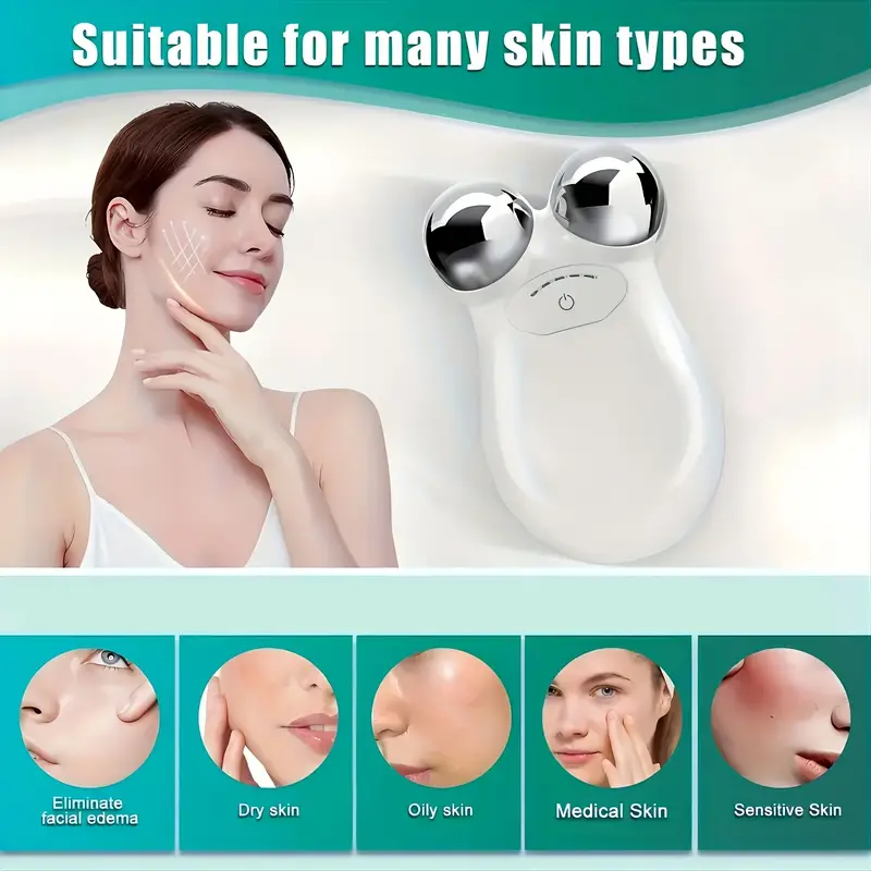 يحفز الجهاز الصغير بلطف المناطق السطحية الأكبر في وجهك ورقبتك للمساعدة في تحسين الشكل واللون.