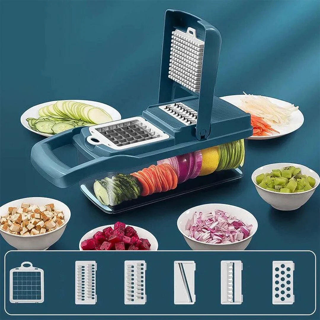 قطاعة الخضراوات تحتوي على 6 شفرات قابلة للتبديل، تقطع بسهولة مجموعة متنوعة من الخضار والفواكه مثل البصل والفطر والخيار والجزر والبطاطا والطماطم والزنجبيل والثوم والجبن وغيرها.