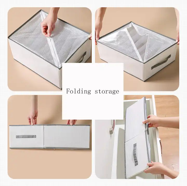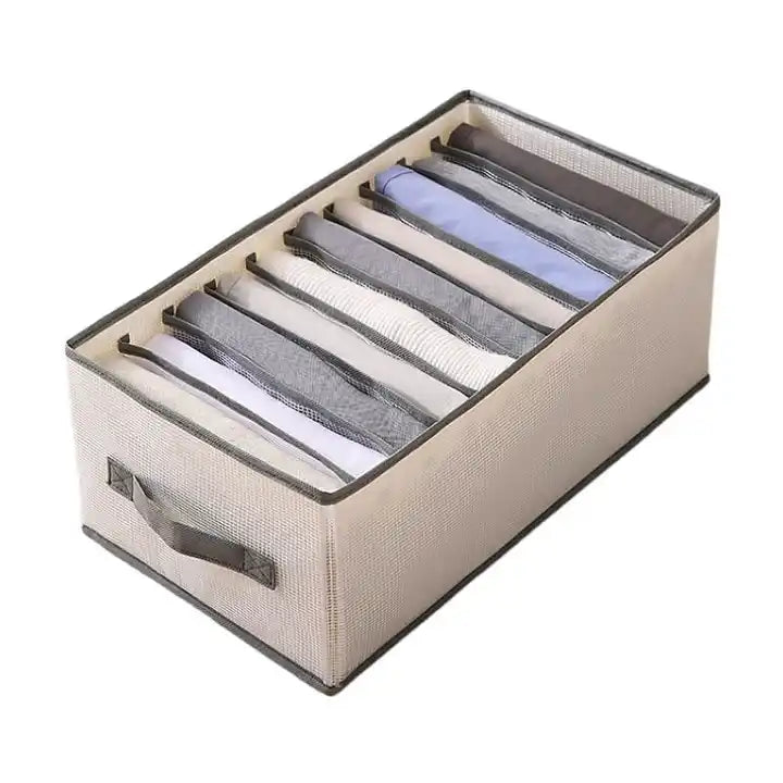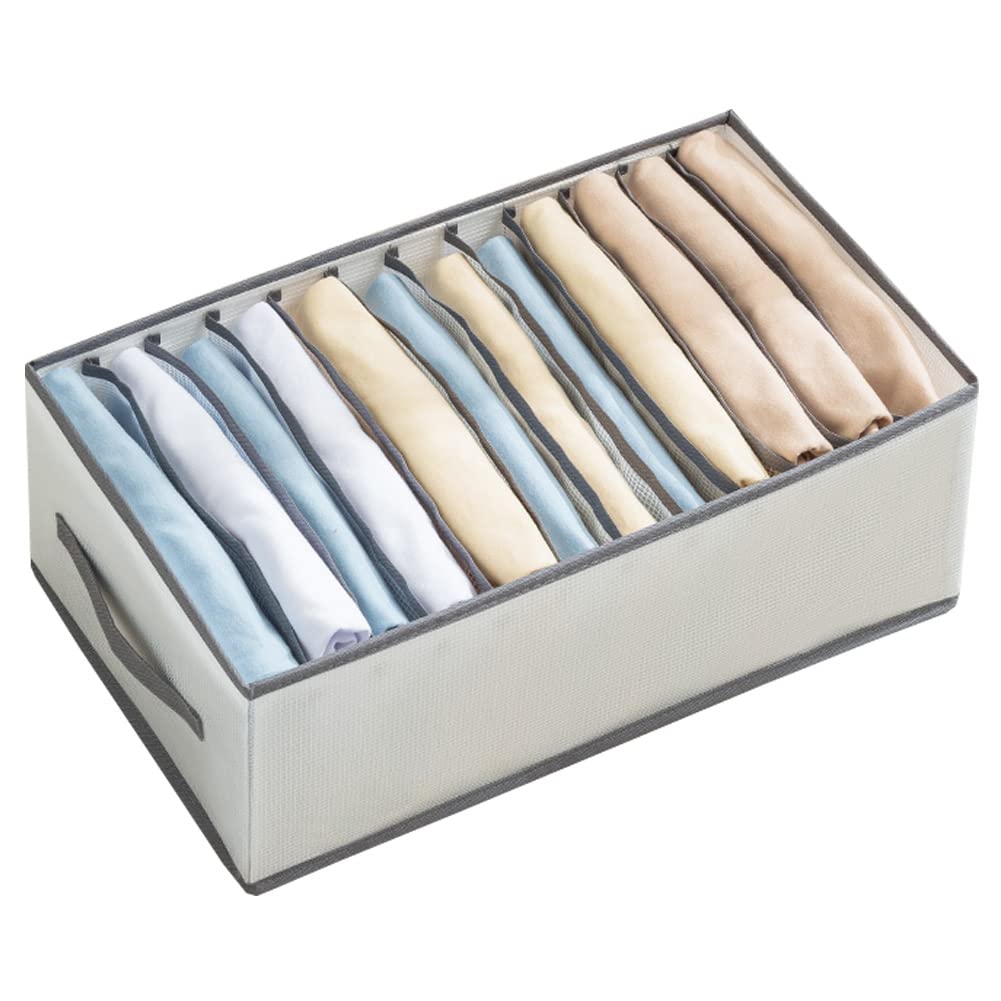 بفضل الفواصل البلاستيكية المدمجة، يتمتع هذا الصندوق بتنظيم عالي. يمكنك تكديس العديد من الملابس للحصول على أقصى استفادة من المساحة خزانتك وغرفة الملابس.